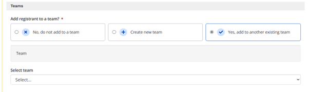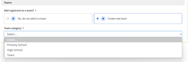 Select event you would like to be part of, i.e. 4km Run – all team members must be in the same event.
