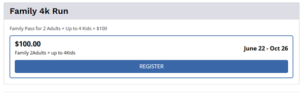 When entering the Family 4k Run, you need to register all the family members that will be taking part in the event at the same time to ensure they get a race bib on race day.